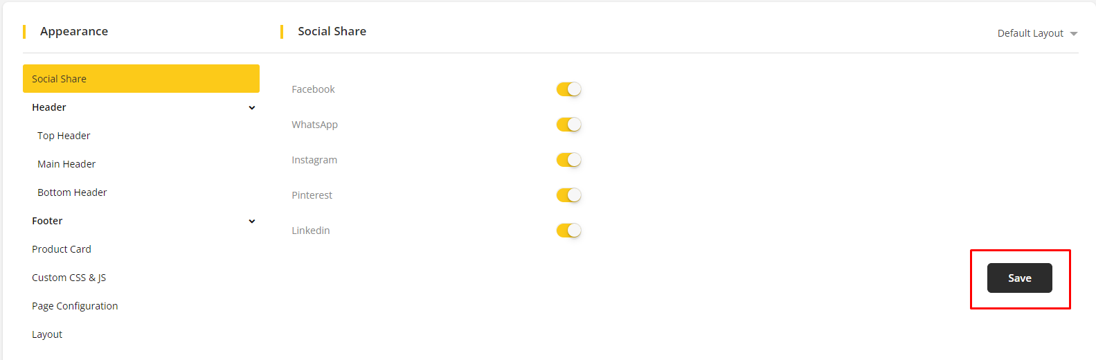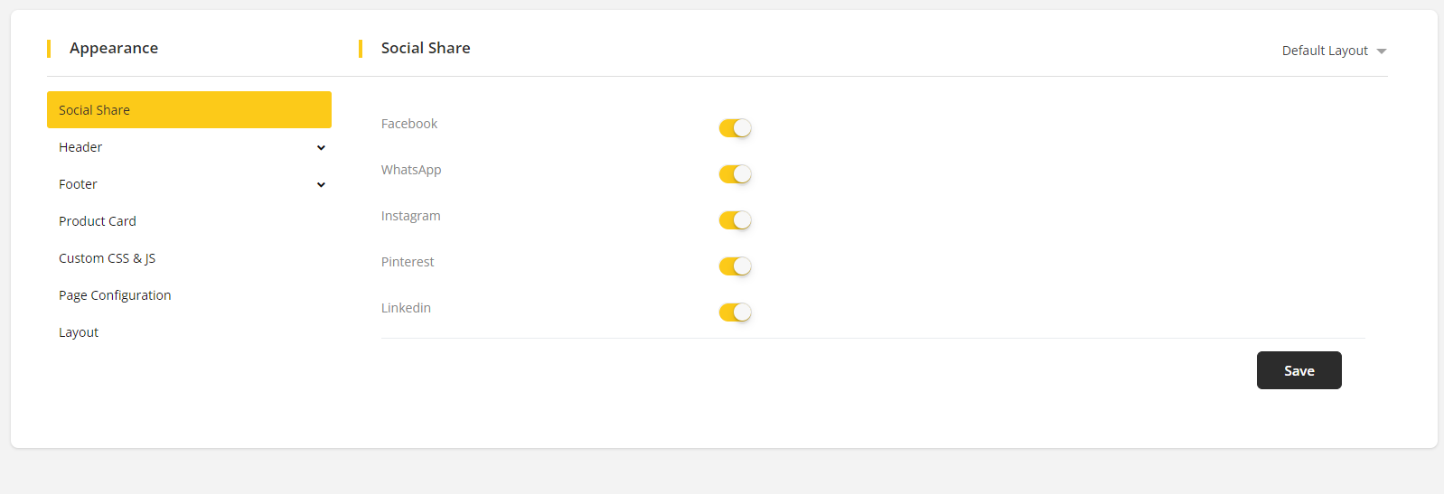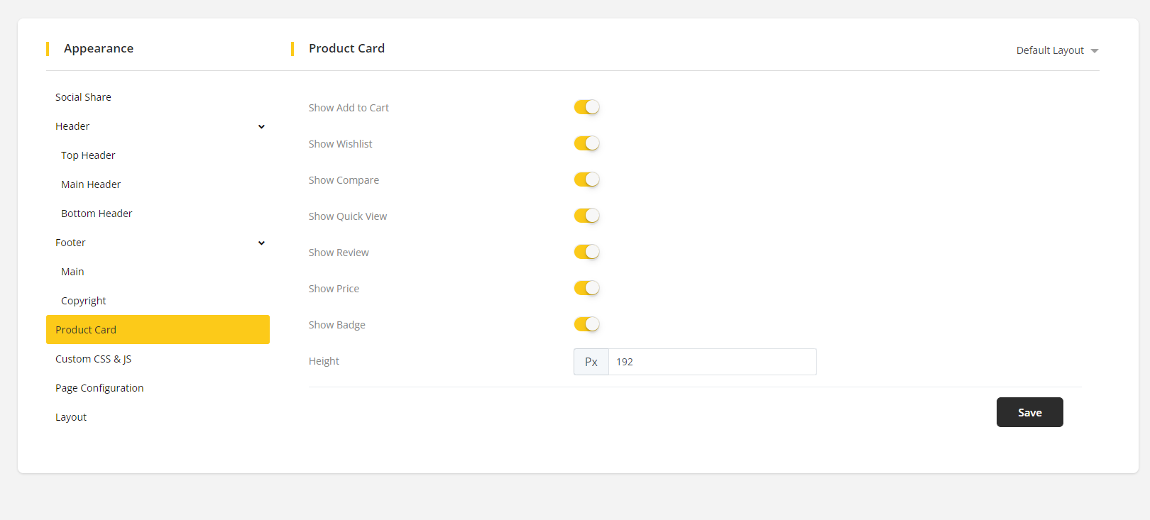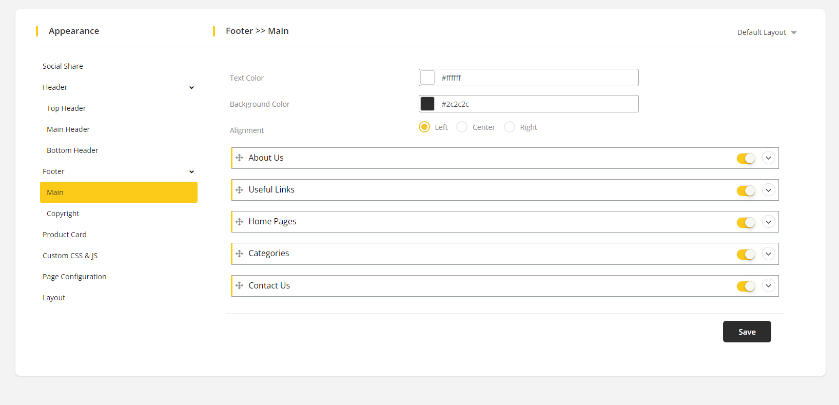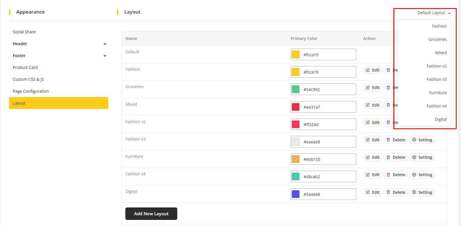 Setting, you can change the layout setting. - If you click on Setting of any layout, then it will show sections as per the layout, you can change or customize the appearance of this layout.
