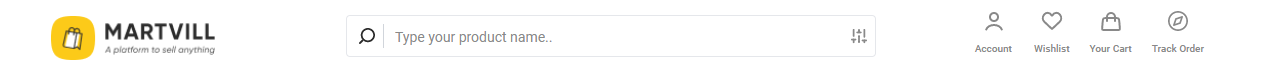 Search bar,Show Account Icon,Show Wishlist,Show CartandShow Track Orderis enable then it will show in the main header.