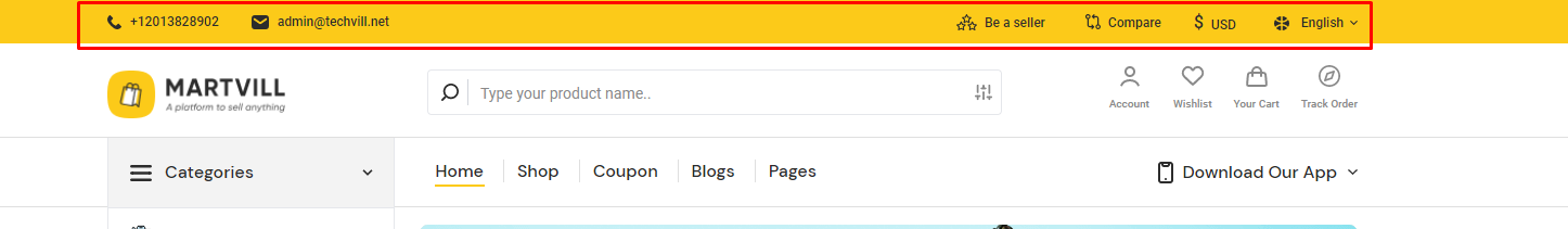 Phone NoandEmailfield. IfShow Phone NoandShow Emailis enable, then it will show in the top header. - If