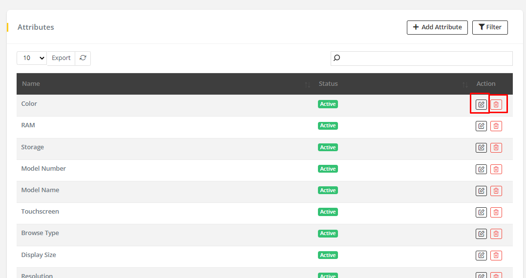 - To Delete or Edit an attribute. Go to Attribute list and Click Edit icon to Edit and Delete icon to Delete the attribute.
