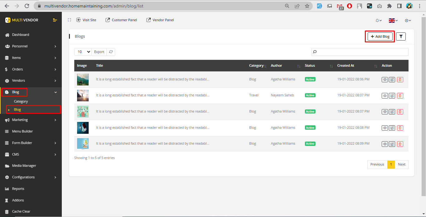2. Click on Add Blog to add new vendor.
