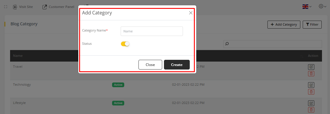 2. Click on Add Category to add new category for blog.