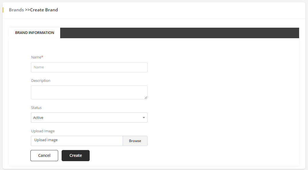 - Click Create. it will add the brand to the system.