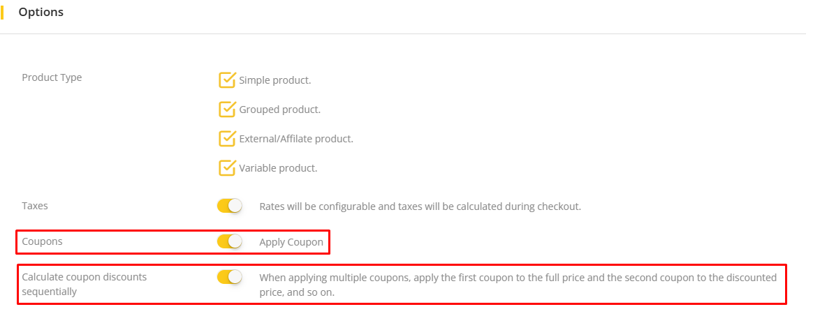 If the coupon application permission is enabled then another configuration regarding coupon will appear which is the permission to apply coupon discounts sequentially to an order. It means if the permission is enabled and a user applies two coupons on a single order then the first coupon will be applied to the total order price and the second coupon will be applied on the discounted price after the first coupon is applied. And if the configuration is disabled then both the coupons will be applied on the main price rather than the discounted price.