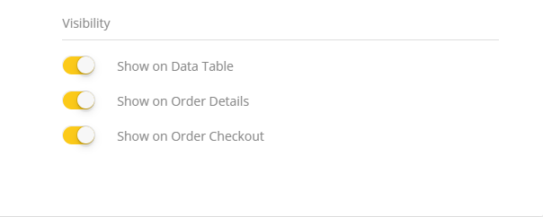 The admin can also select the custom field location as checkout. If custom field location is selected as checkout then the visibility options that the admin can configure are order list(data table), order details page and customer order checkout.