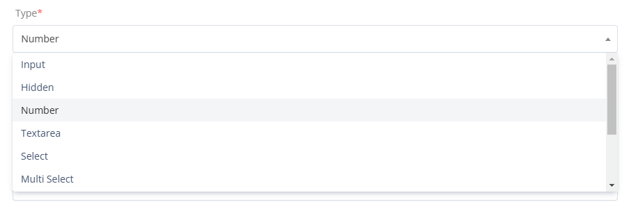 In Martvill, custom fields can be of different types which are Input, Hidden, Number, Text Area, Select, Multiselect, Chekbox, DatePicker, ColorPicker and HyperLink. While creating custom fields the admin has to select a type for the custom field and the created custom field will be of that specific type.