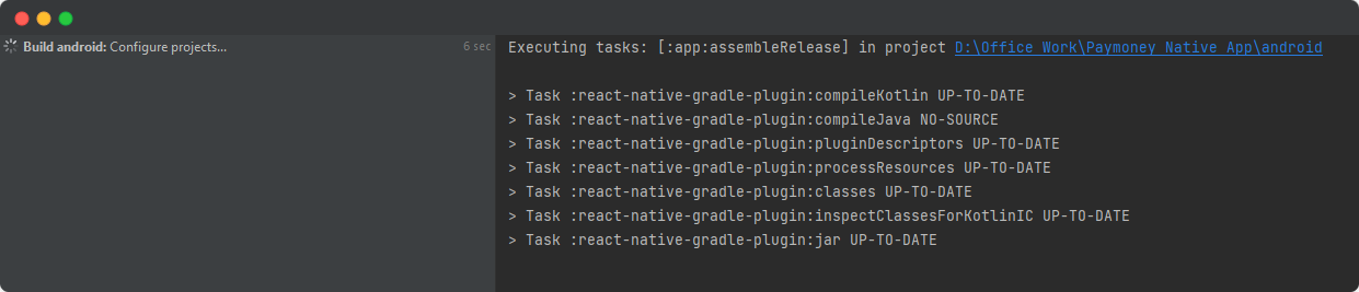 cd android ./gradlew assembleRelease -x bundleReleaseJsAndAssets