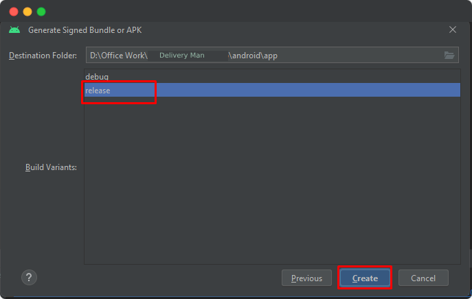 Thus, click on Ok, then click on Next. Select release or debug and click Create