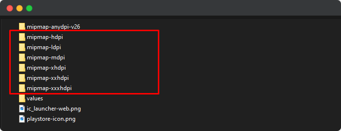 ● Copy mipmap-**dpi files under the android folder from the extracted folder.