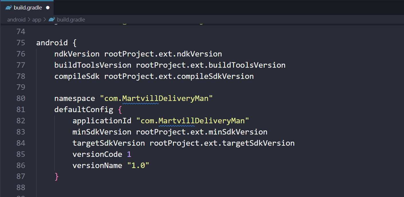 ○ Go to: `projectFolder\android\app\build.gradle.`