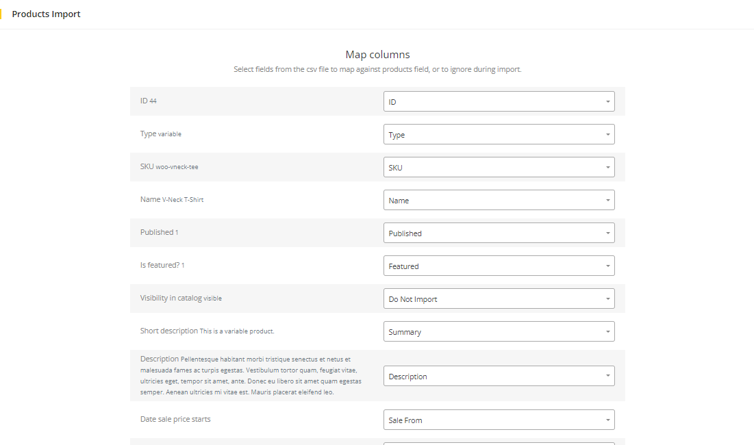 You can verify that your column headers are mapped to the appropriate fields in MartVill before completing the import.This serves as a final verification that everything will be imported properly. To ensure that your fields are being mapped to the appropriate location, check the list.