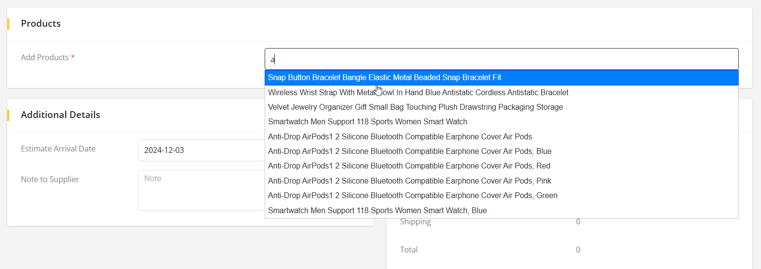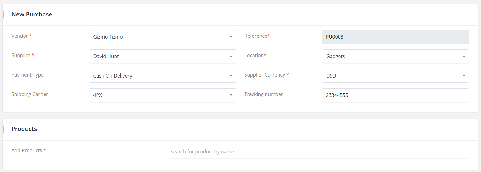 To add products you must filled up the above list like vendor, location and supplier. But when you create a purchase order as a vendor you will not be required to add a vendor. You also have to select a supplier currency in which the supplier will receive the amount.