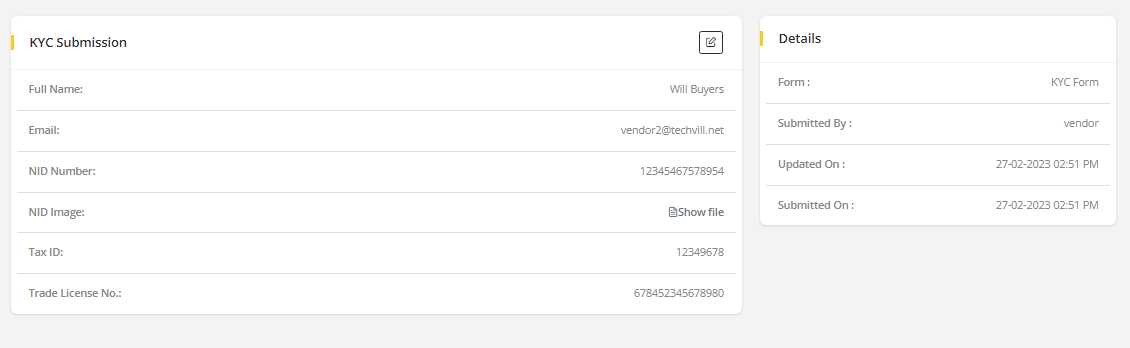 - Vendor can not delete their KYC form or any information.