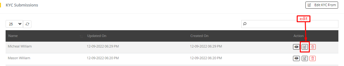 Edit from KYC submission list