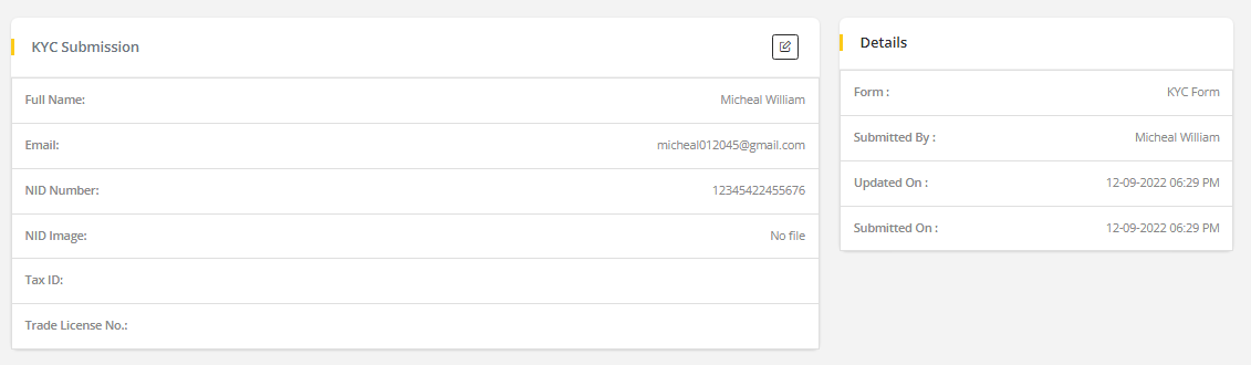 Submitted KYC form Preview