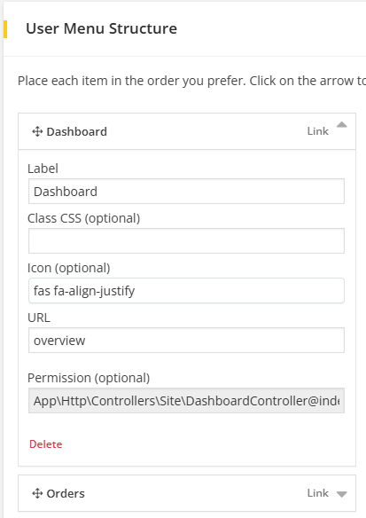 Labelchange will change the menu item label/name.Iconto set the icon for the menu item.CSSto change the menu item's styleDeletewill delete the menu item from the menu structure.URLfor any specific location where the menu will redirect to
