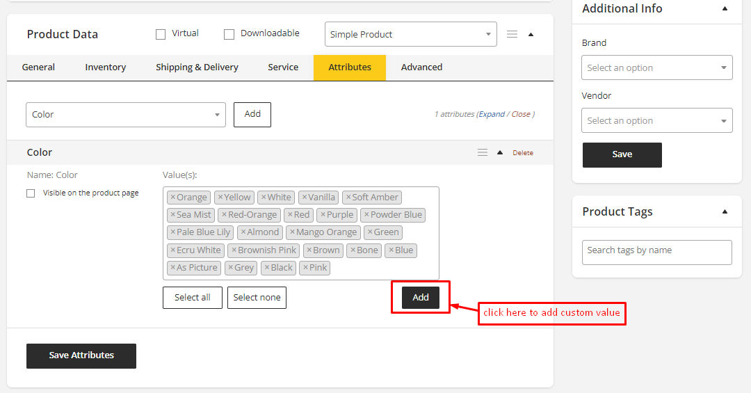 You can also add Custom value by Clicking on Add. Enter the value you want to add on that attribute and Click Add New.