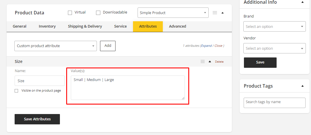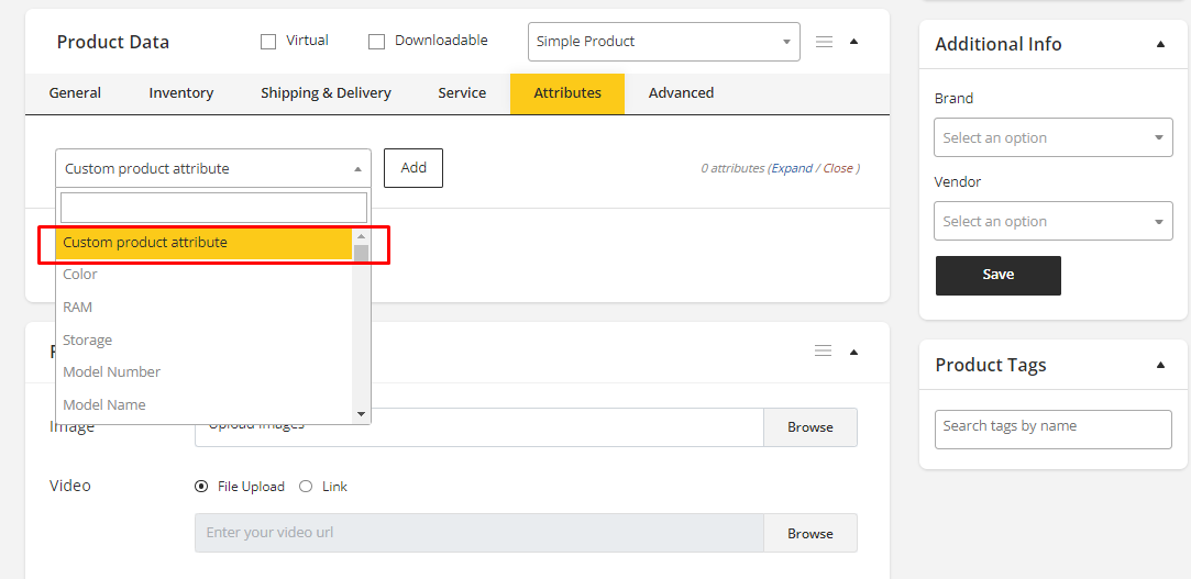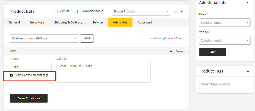 Global Attribute can be added in this section or you can create custom attribute and can add them to the product's attribute. You can add Global Attribute from here.
