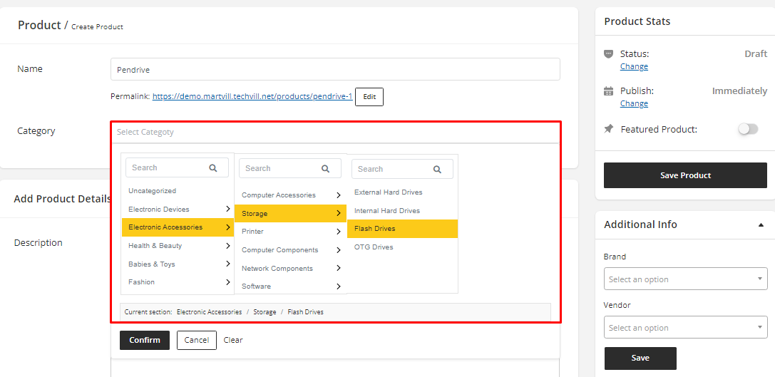 - Select Brands to the product. You can add new brand to the system from Brand section.