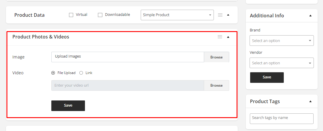 - Video: You can upload video from your device when File upload radio button is selected and video link can be provided when link radio button is selected.