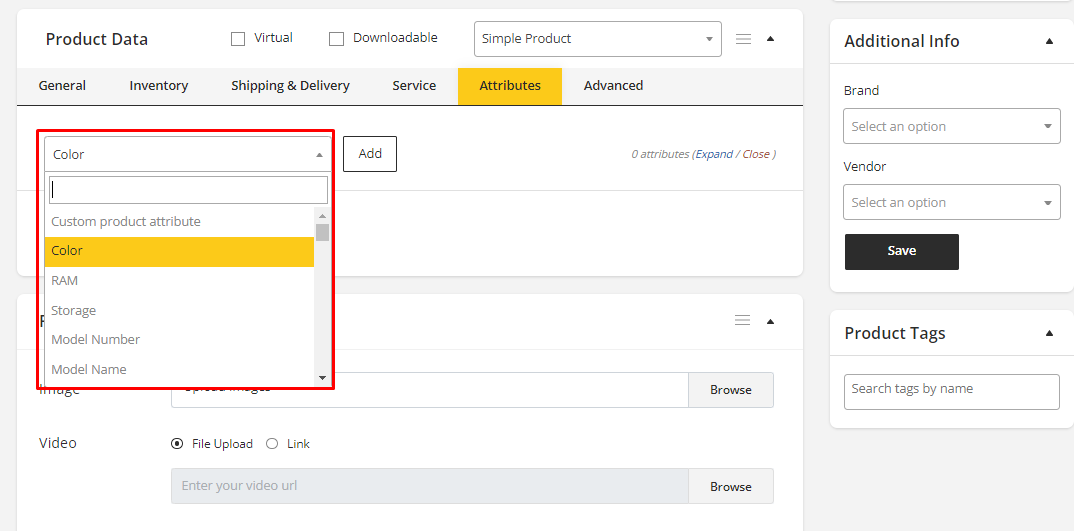 - Select Brands to the product. You can add new brand to the system from Brand section.