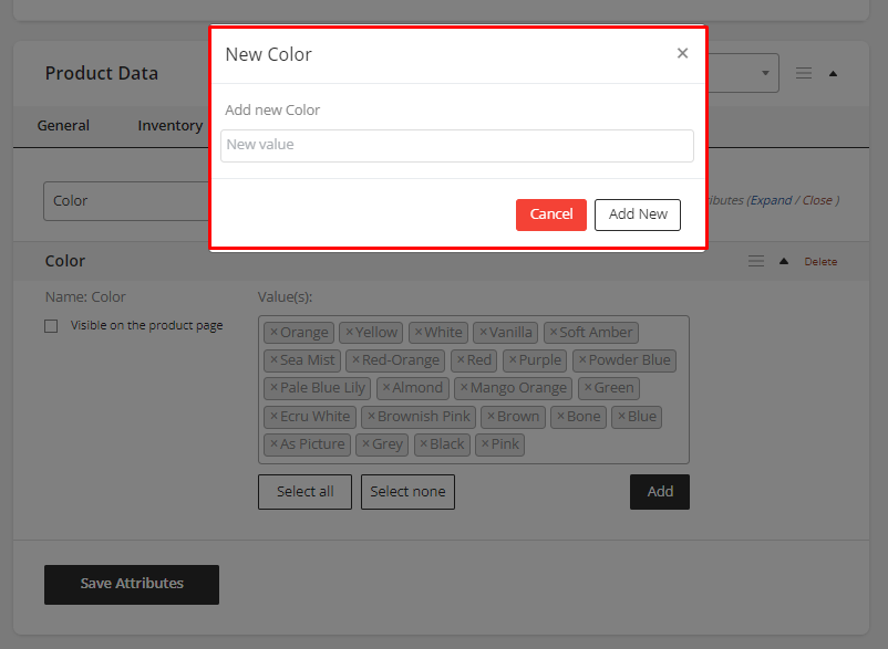 You can also add Custom value by Clicking on Add. Enter the value you want to add on that attribute and Click Add New.
