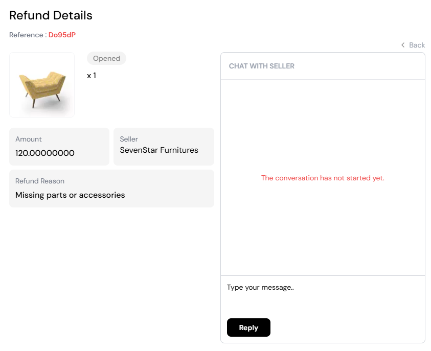 - Opened: when a refund request is sent, the status will be Opened.