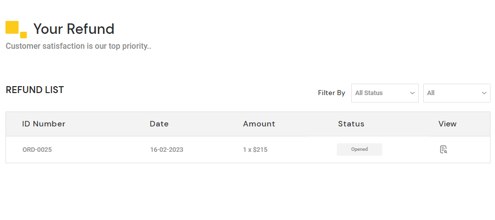 Go To MartVill Customer Dashboard > Refunds . Refund list will appear. Click on the view icon from the right side of the list.