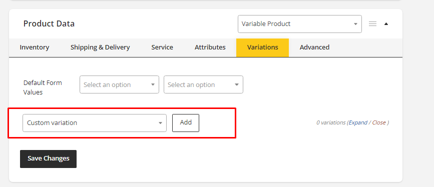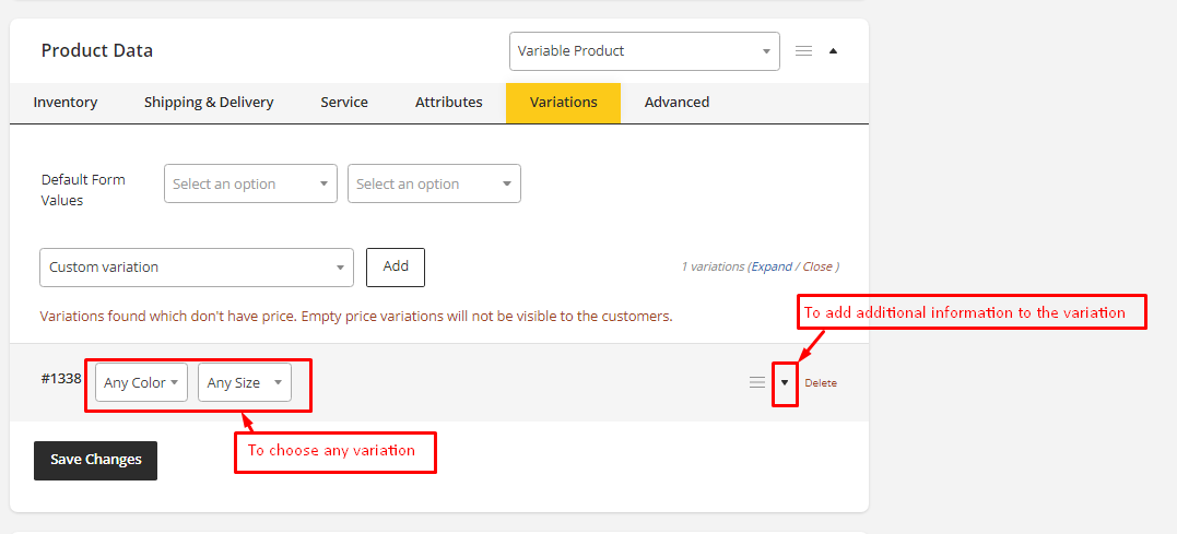 - Save all the information of the variations by clicking Save Changes.