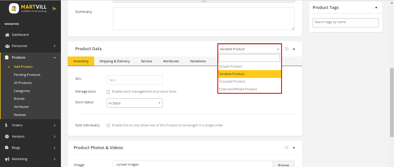 - Go to: MartVill Dashboard > Products