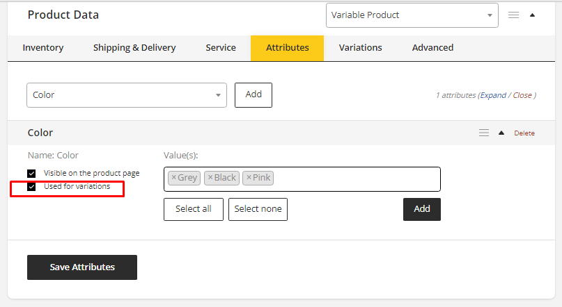 Adding Attributes to Use for Variation